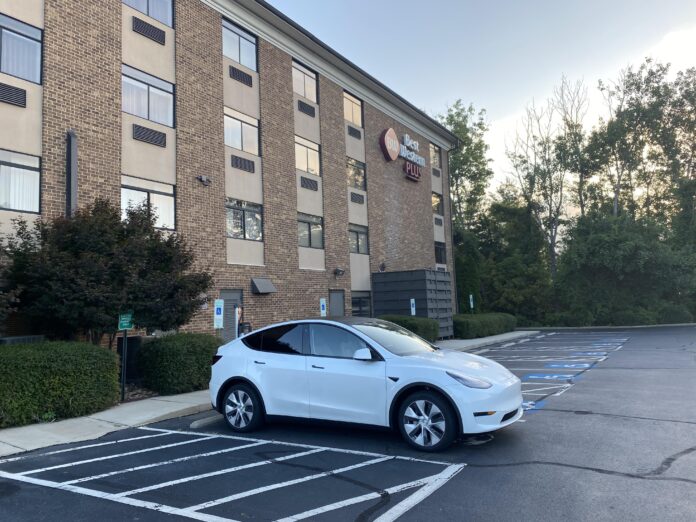 When traveling and staying at places like hotels or public parking areas that offer charging, you’ll likely find the J1772 connector. This connector is widely used for Level 1 (standard home outlet charging) and Level 2 (240-volt, like a dryer outlet) charging stations and home chargers for non-Teslas across North America. Fortunately, your Tesla comes with a J1772 adapter, so you can easily use these chargers. Just attach the adapter to the charging cable’s end and plug it into your Tesla. Because J1772 stations are popular at many hotels and destination chargers, keeping your J1772 adapter in your car can ensure you’re always ready to connect to available chargers while traveling​​.